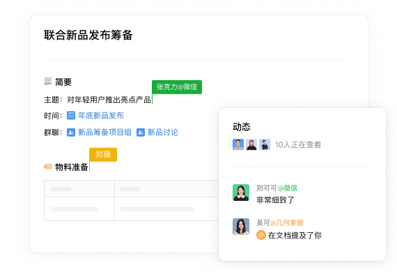 成員可創(chuàng)建收集表,數(shù)據(jù)可同步到表格中分析;還可添加多種題型、設(shè)置跳轉(zhuǎn)與定時重復(fù),滿足多樣的收集需求。